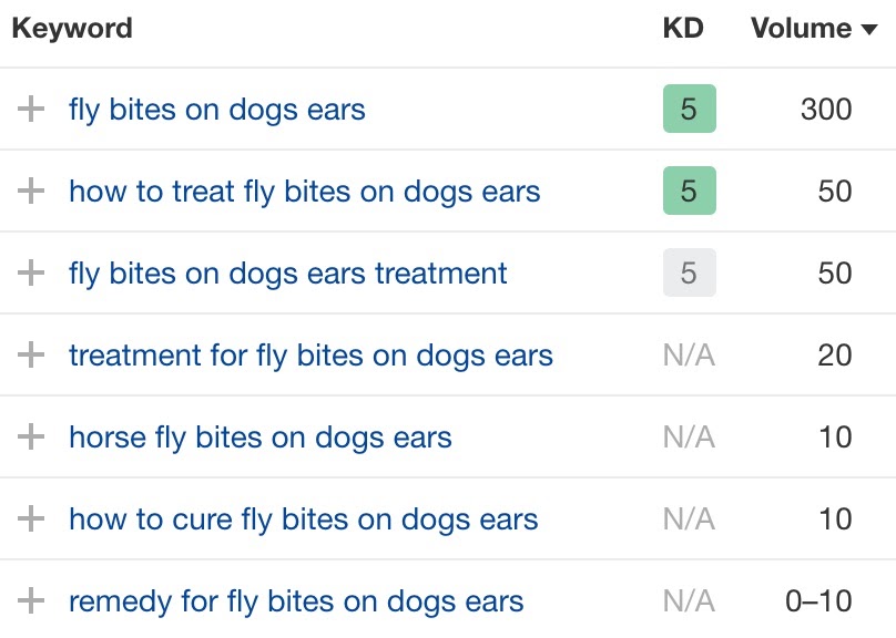 现在让我们看看另一种长尾关键词:“fly bites on dogs ears”。