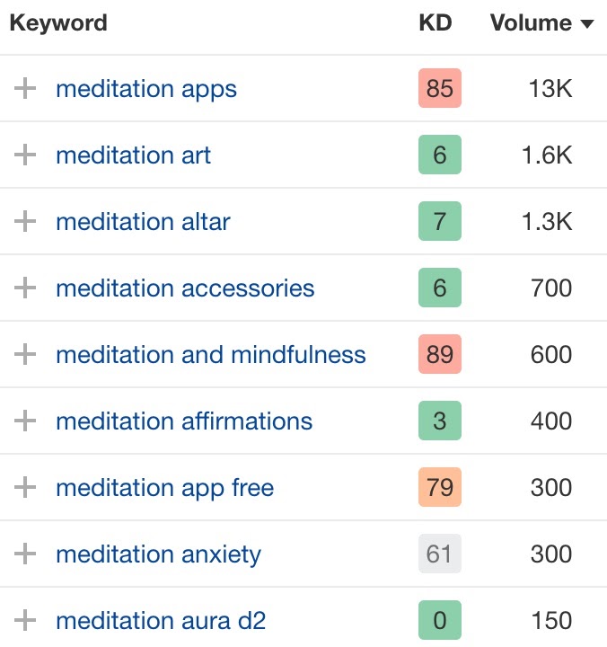 例如,关键词 “meditation” 是一个 “头部” 关键词,因为它每月获得 21万次搜索。 关键词 “can meditation make you smarter” 是一个长尾关键词,因为它每月只能获得 50 次搜索。
