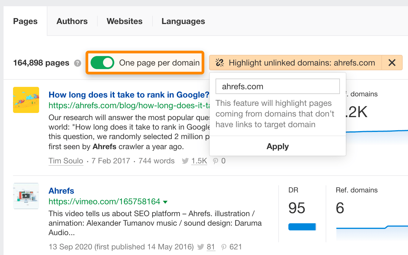 这里有一个示例是关于 Ahrefs 的: