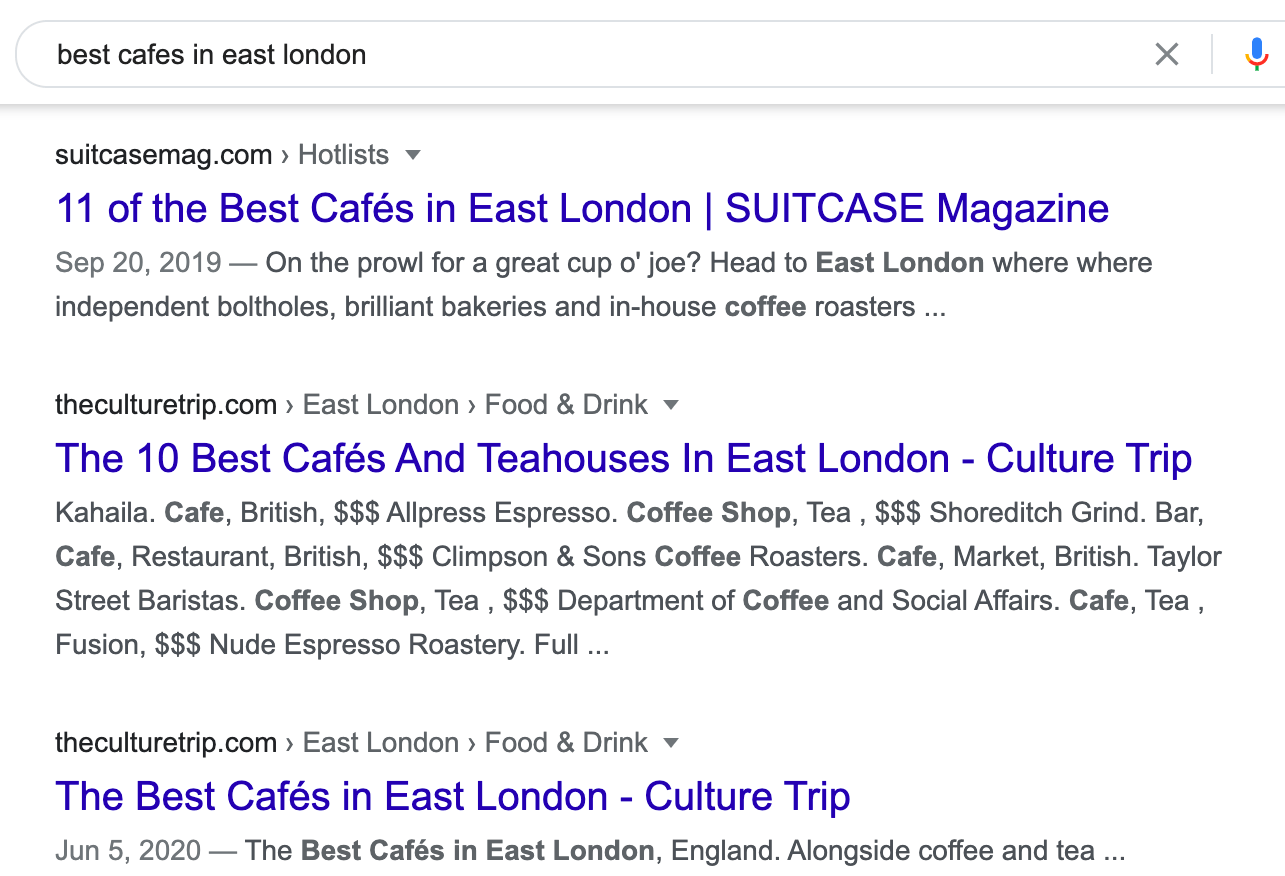 对于小企业来说,竞争某些关键词的排名是很困难的。例如,“best coffee machines”(“最好的咖啡机”)这一关键词的结果已经被大网站主导了。