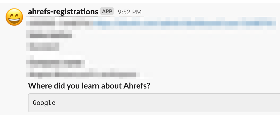 Our #registrations channel in Slack keeps us in the loop about how new signups found us.