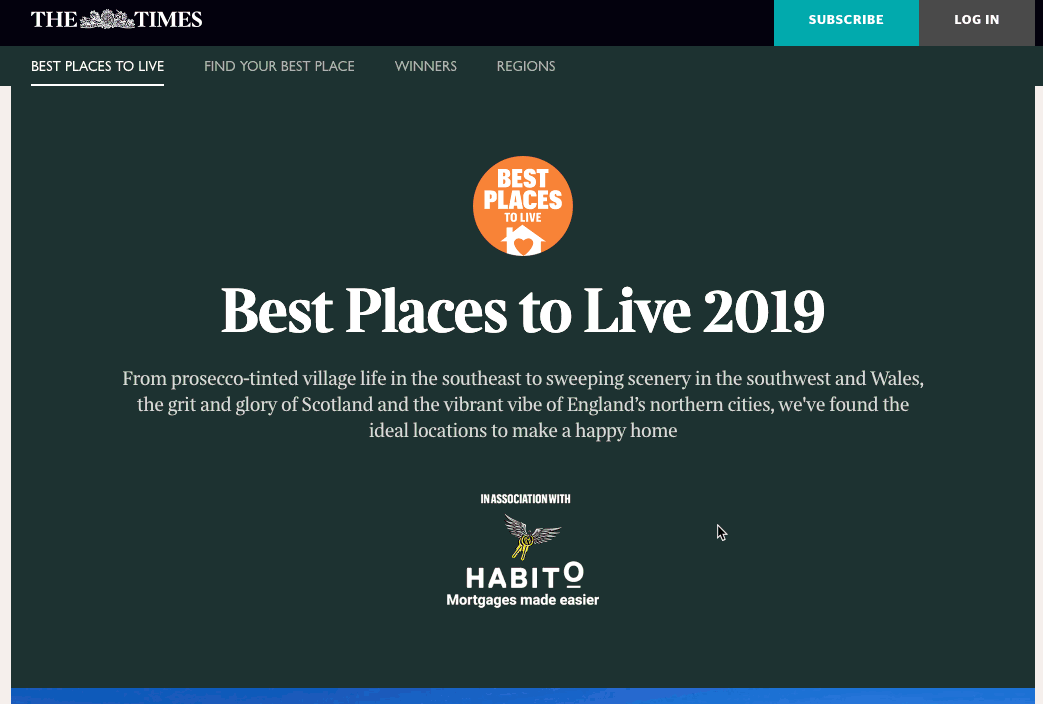 撰写此文时,《泰晤士报》(The Times)的这一页面之于“最适合居住的地方”(“best places to live”)这个关键词在英国 Google 排名第一。
