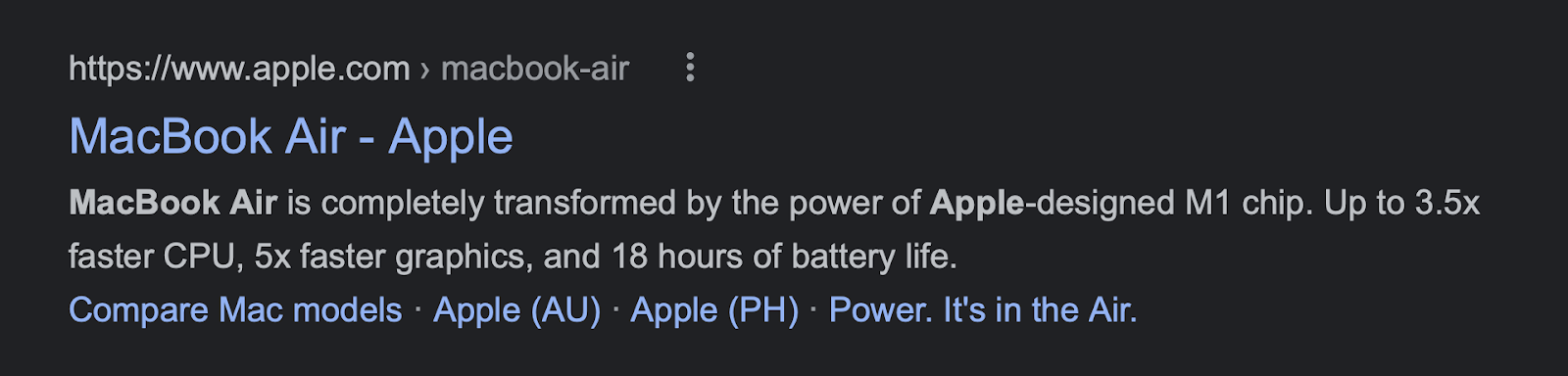 对于这样一个可识别的产品,这可能是最合理的元描述。苹果只是强调其最新一代产品的变化,而不是MacBook Air是什么。