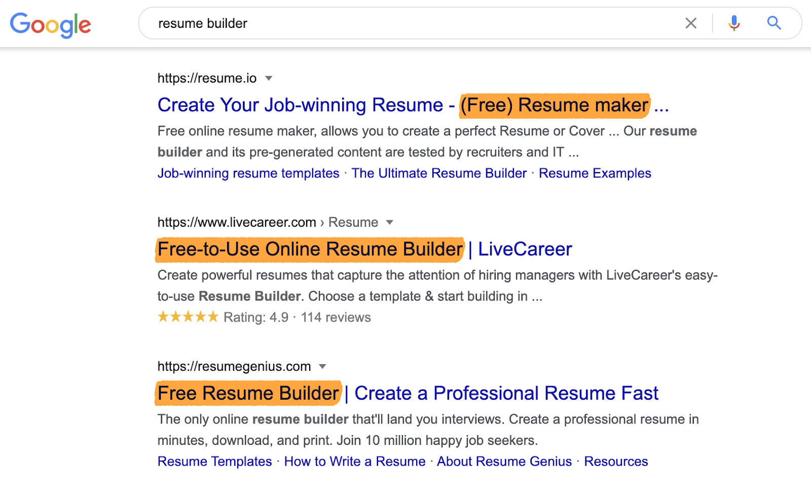 例如,从简历技巧的搜索结果中可以明显看出,人们正在寻找一篇清单格式的博客文章。