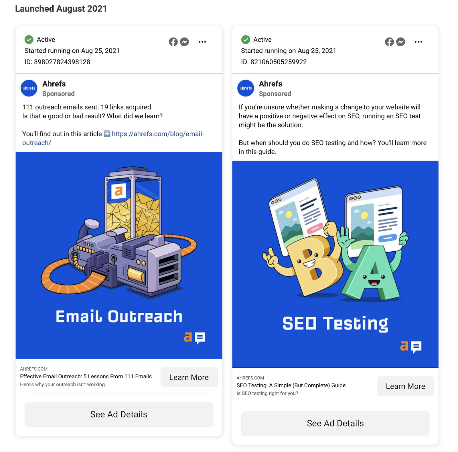 同样的道理也适用于社交媒体广告,比如 Facebook 上的这些广告: