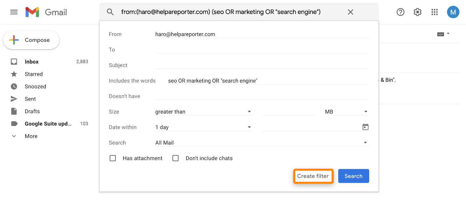 - 将 haro@helpareporter. com (或另一个 feed)粘贴到“ from”字段中