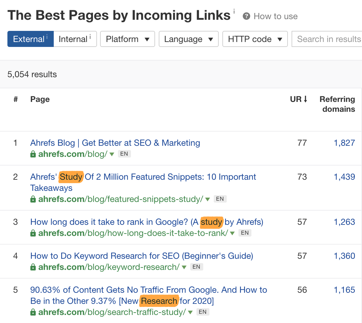 来自Ahrefs网站分析的数据显示了我们链接最多的网页。