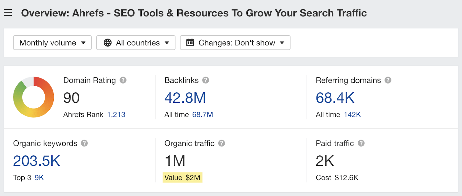 你可以在 Ahrefs Site Explorer(网站分析)中查看任何域名的总体流量值: