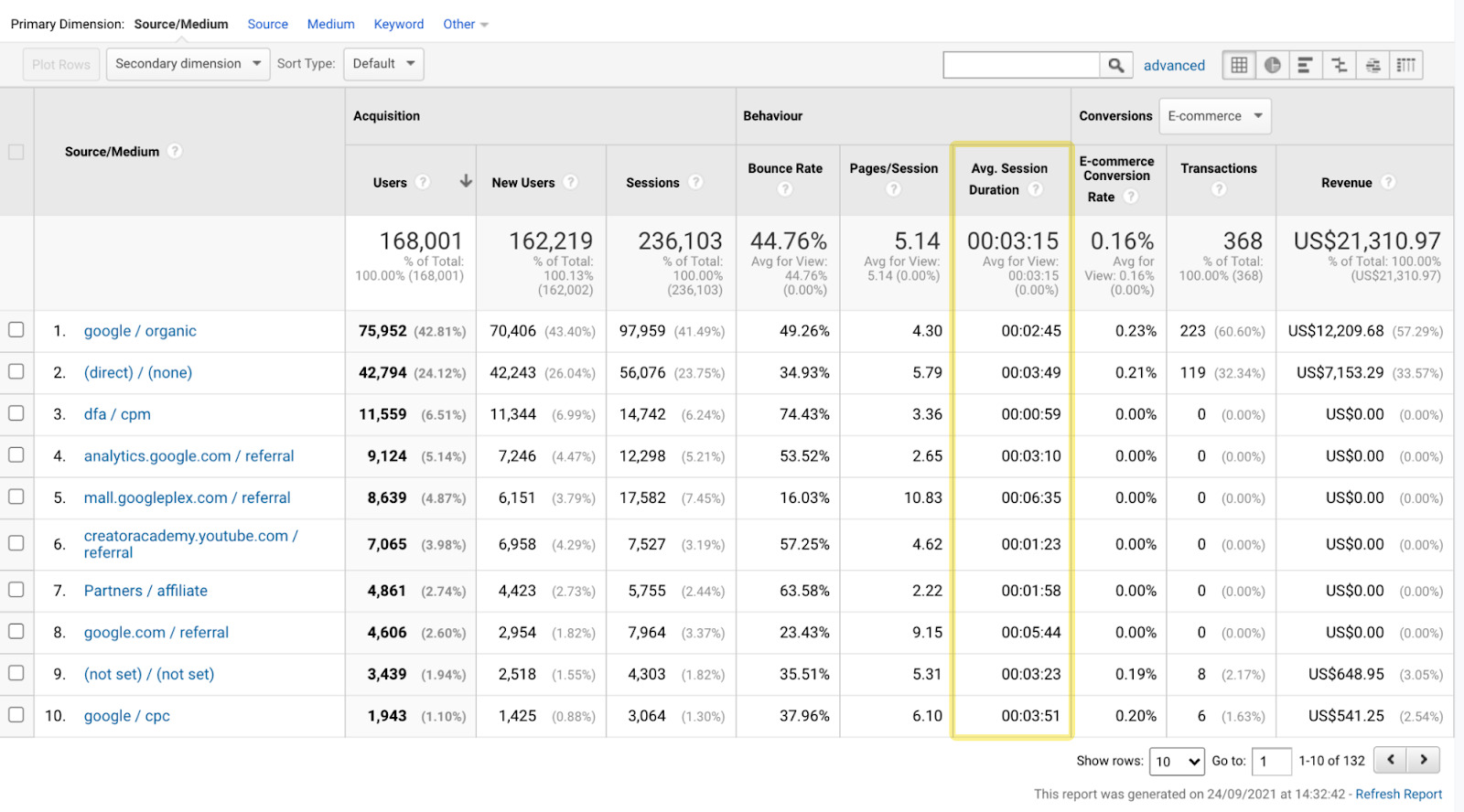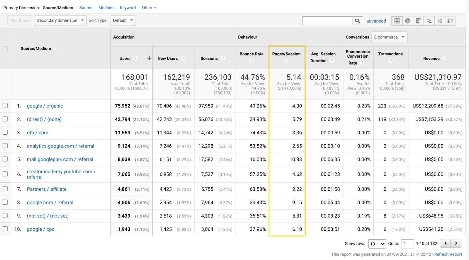 与退出率类似,你可能会遇到基于会话数量较低的页面来优化用户体验。就 SEO 而言,这取决于你的流量: