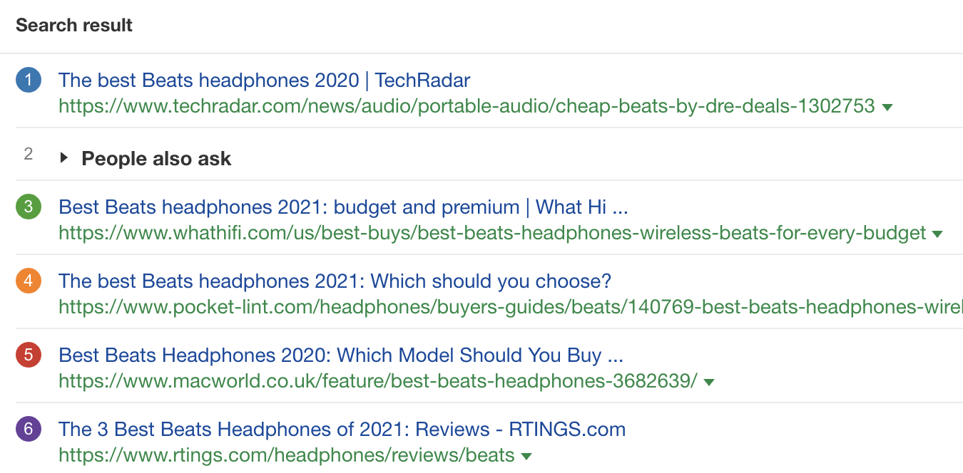 通过Ahrefs的关键词分析搜索 “最好的beats耳机”的结果。