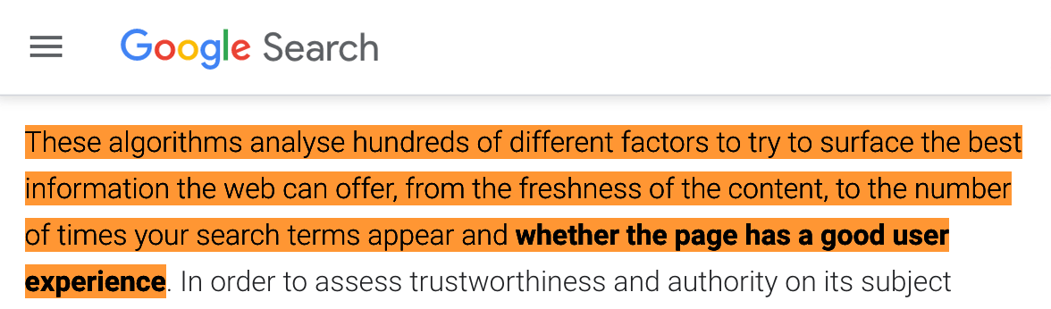 谷歌希望对提供正面用户体验的内容进行排名。他们在自己的页面上这样描述搜索的工作原理: