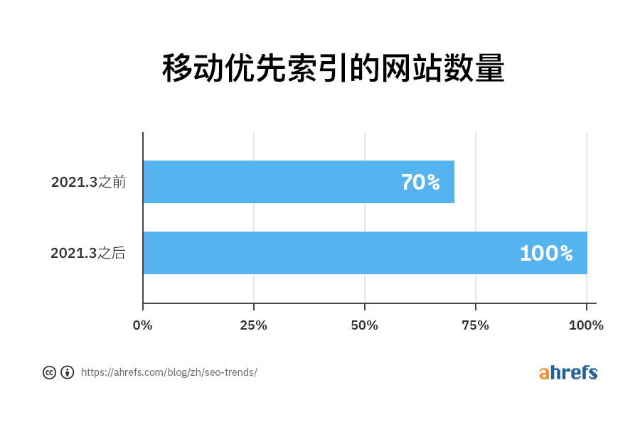 谷歌将移动优先索引定义为“使用移动版本的内容进行索引和排名”。目前,70% 的网站已经在使用移动优先索引技术,谷歌计划在2021年3月之前更换剩余的网站。