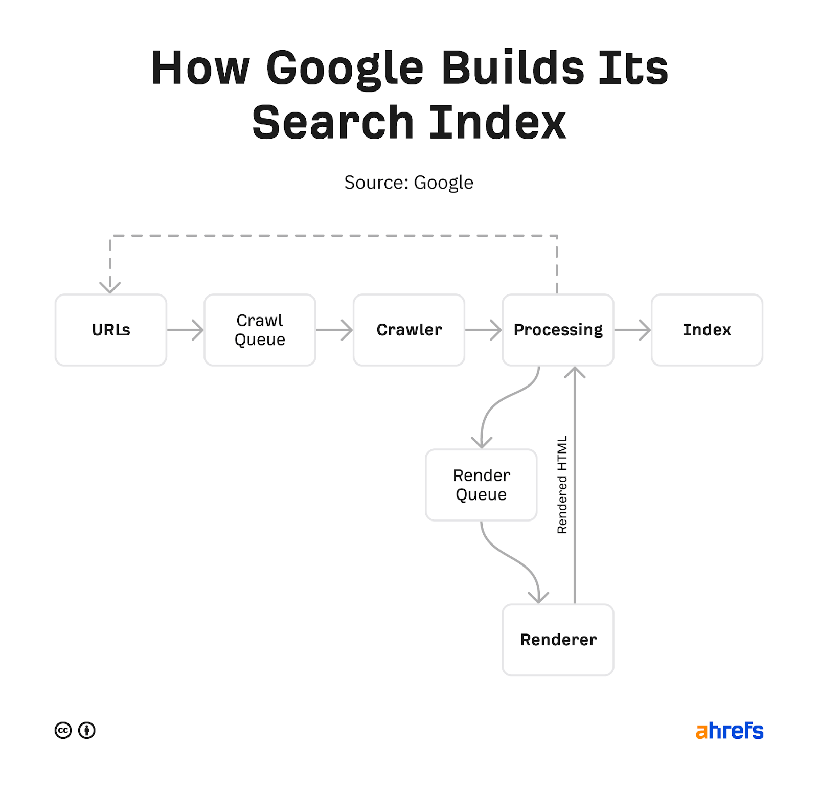 页面被抓取后,它们会被渲染,然后送到索引。索引就是储存搜索结果的列表。