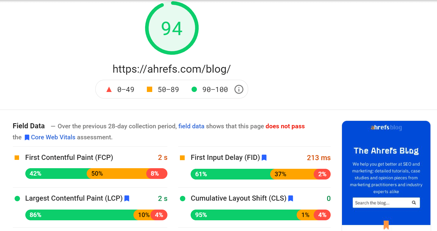 PageSpeed Insights 分析网页的加载速度。除了性能得分外,它还显示了可操作的建议,以加快页面加载速度。