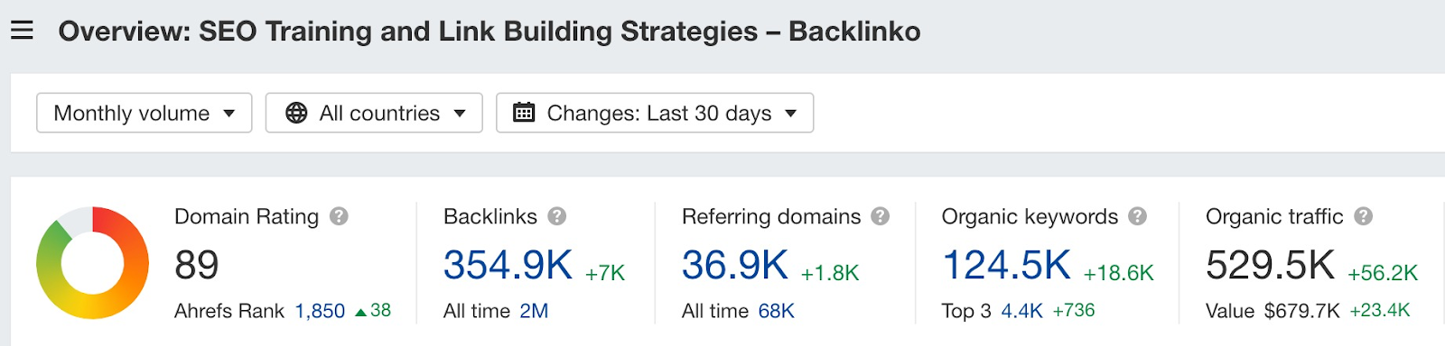 如果我们查看其中一个关键词的结果,你会看到我们的 免费关键词研究工具 排名第三。因为它在几千个关键词上排名靠前,估计每月有6700个自然访问量。