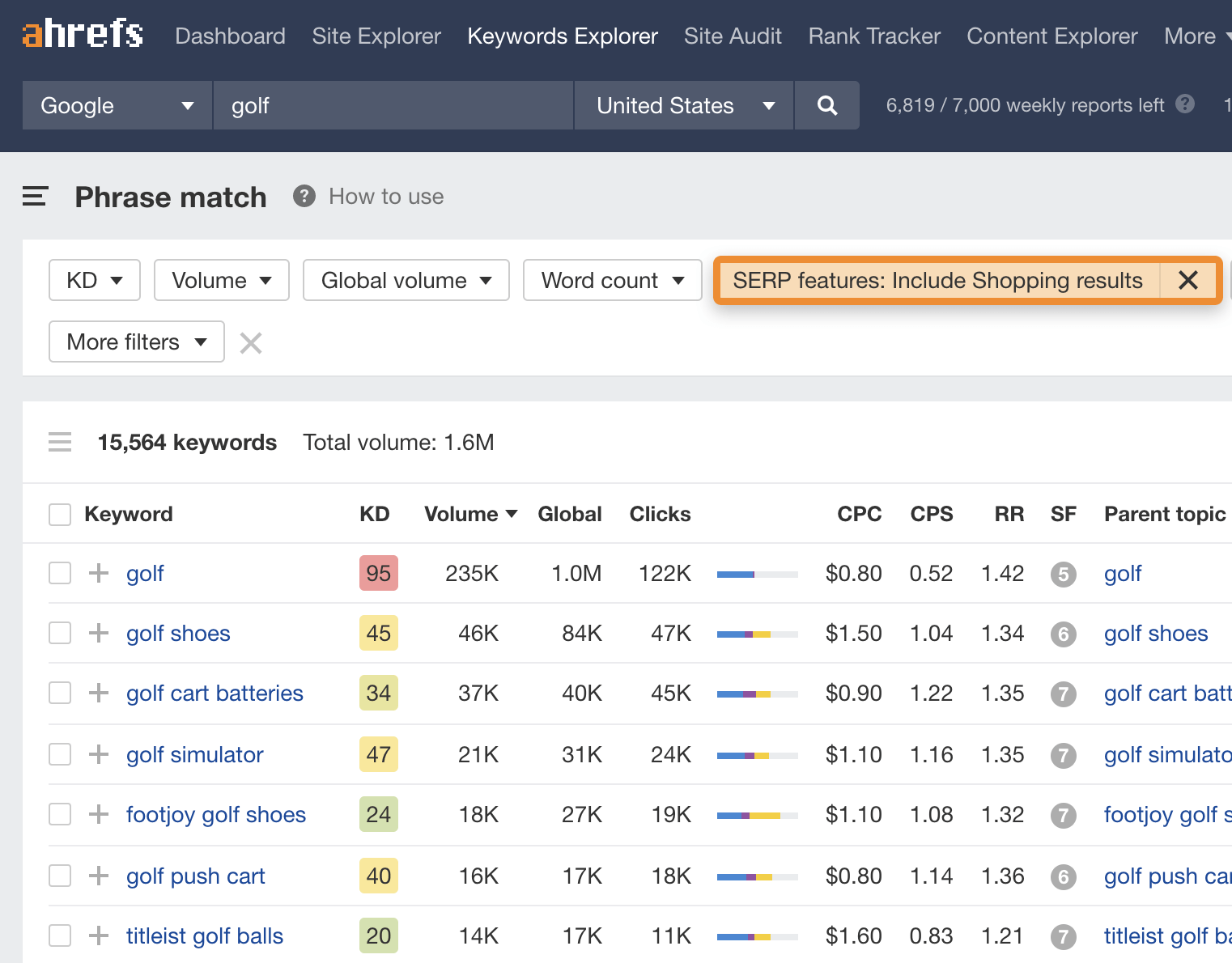 你可以在 Keywords Explorer(关键词分析)进行类似的筛选。