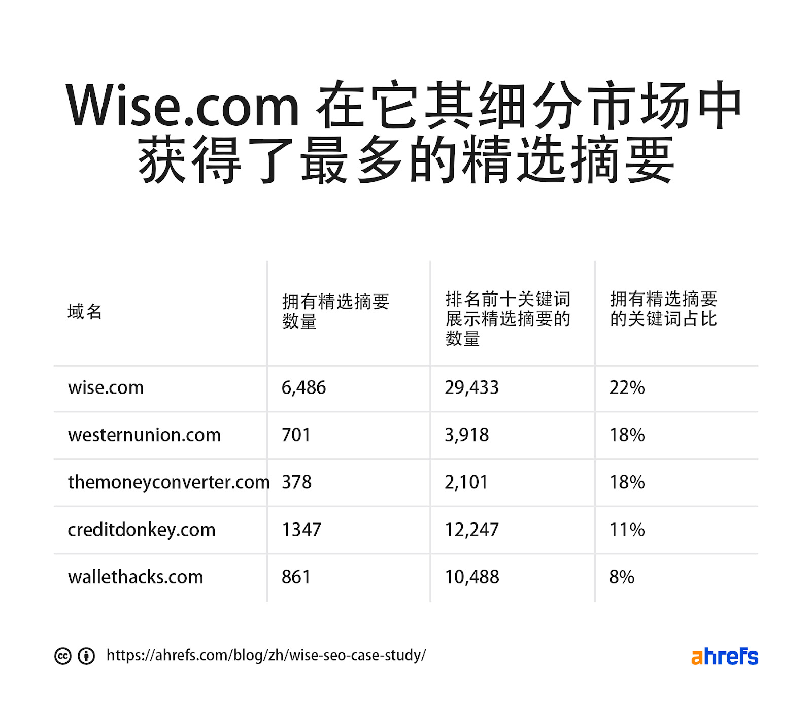 很明显,Wise 在精选摘要优化方面做得非常好,并为他们带来了大量流量。让我惊讶的是,竞争对手明明可以轻松抓住这样的机会,但是它们并没有这么做,例如: