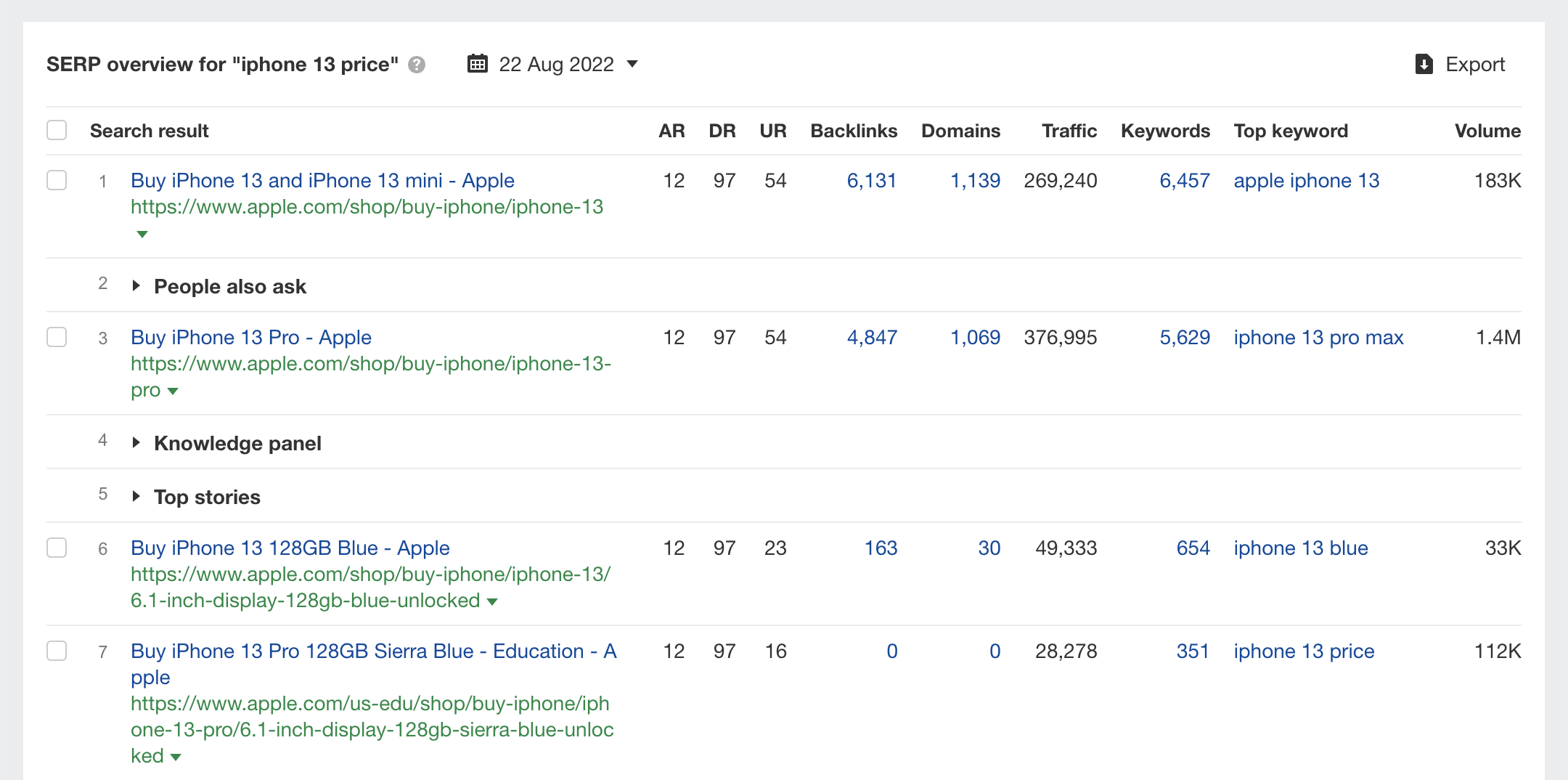 Check key SEO metrics for the current top-ranking pages to see what you're up against, and how difficult it might be to crack the first page.