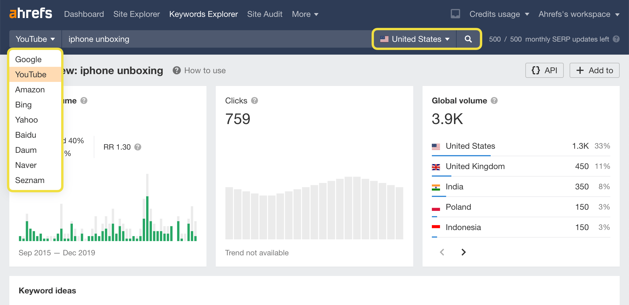 Research keyword ideas in eight other search engines: YouTube, Bing, Yahoo, Amazon, Baidu—the list goes on.