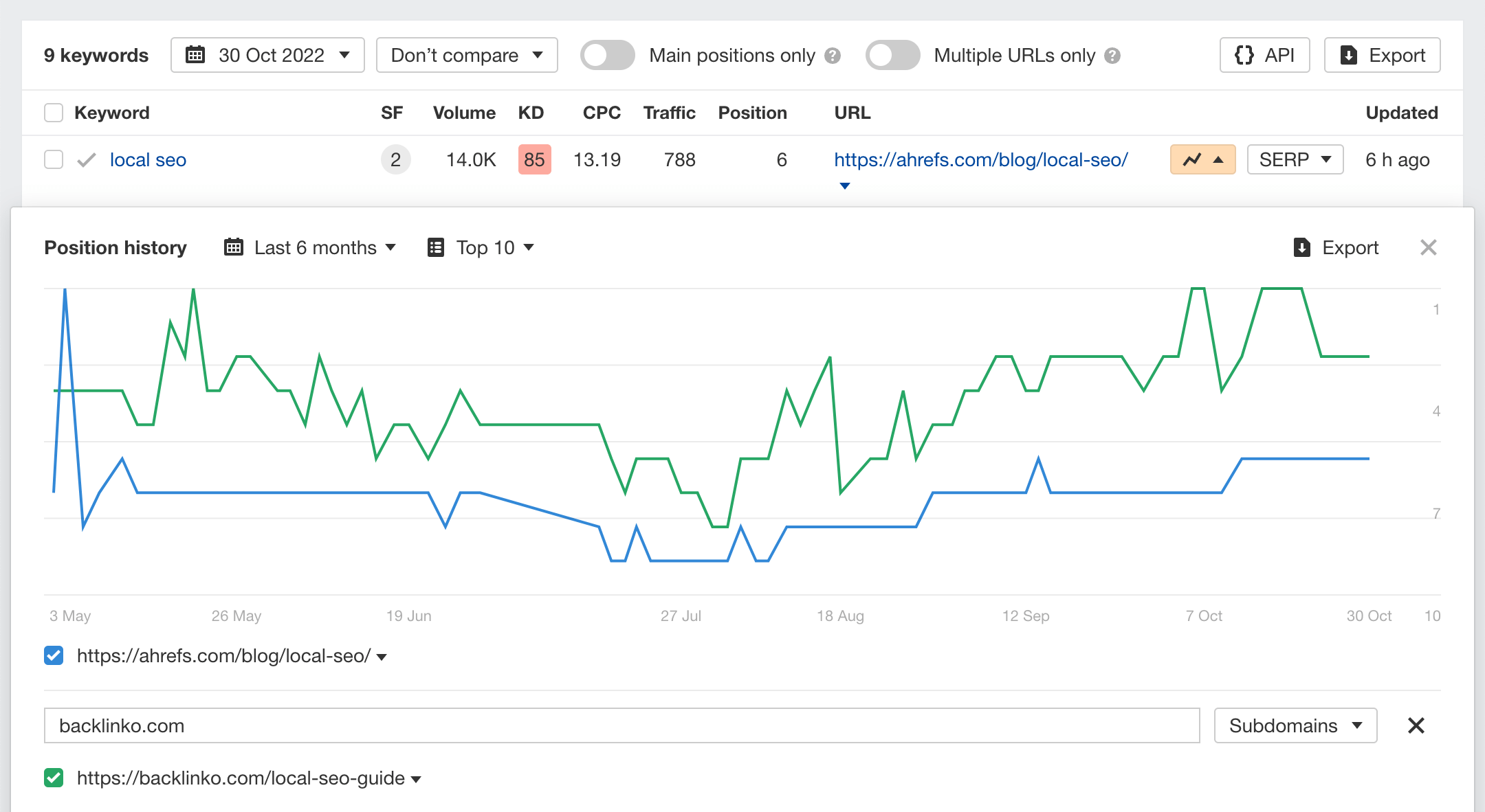 Check if your rankings have improved or worsened over time.
