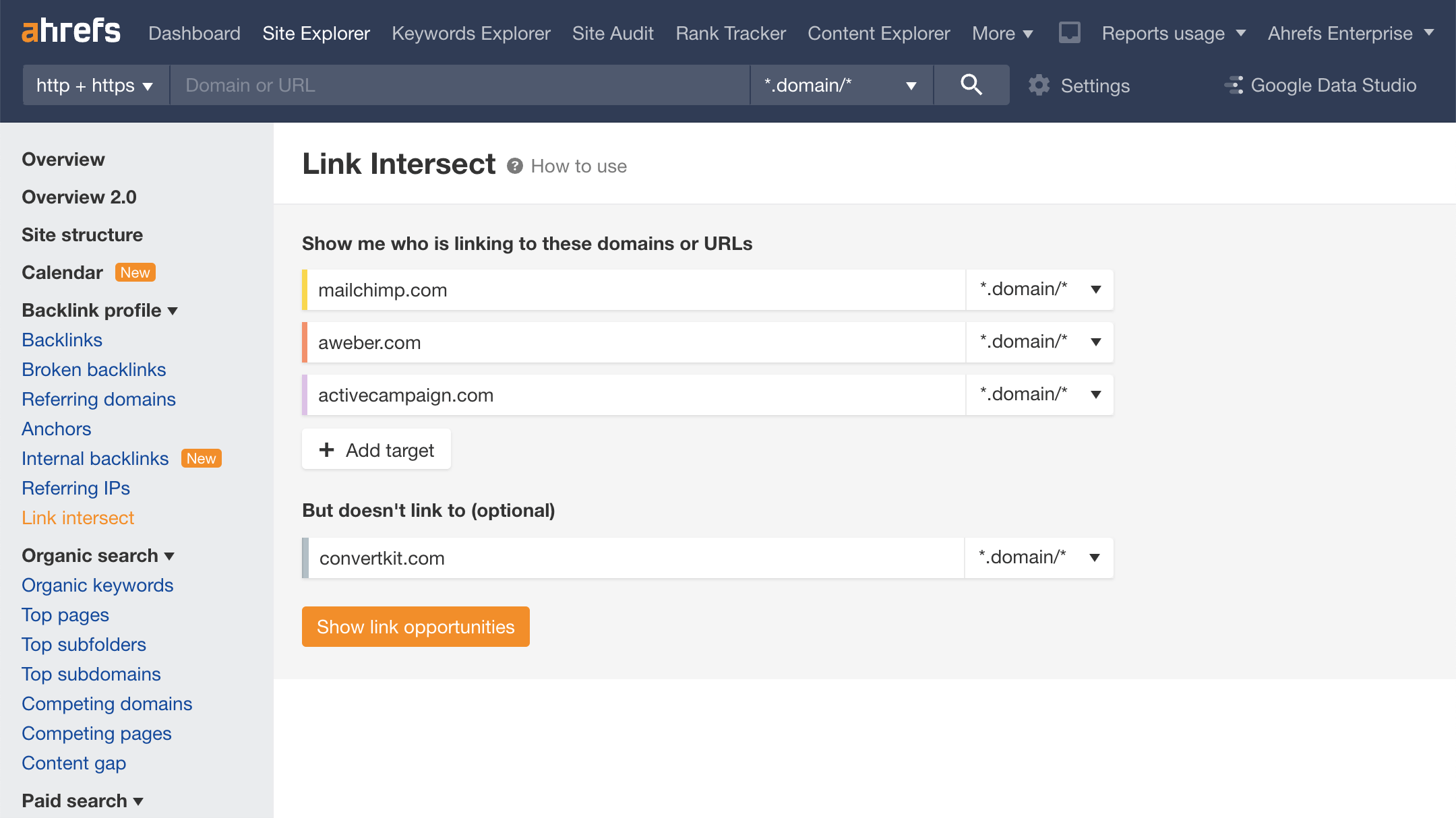 With the help of Ahrefs’ Link Intersect tool, you can easily find the sites that link to your competitors but don't link to you (yet).