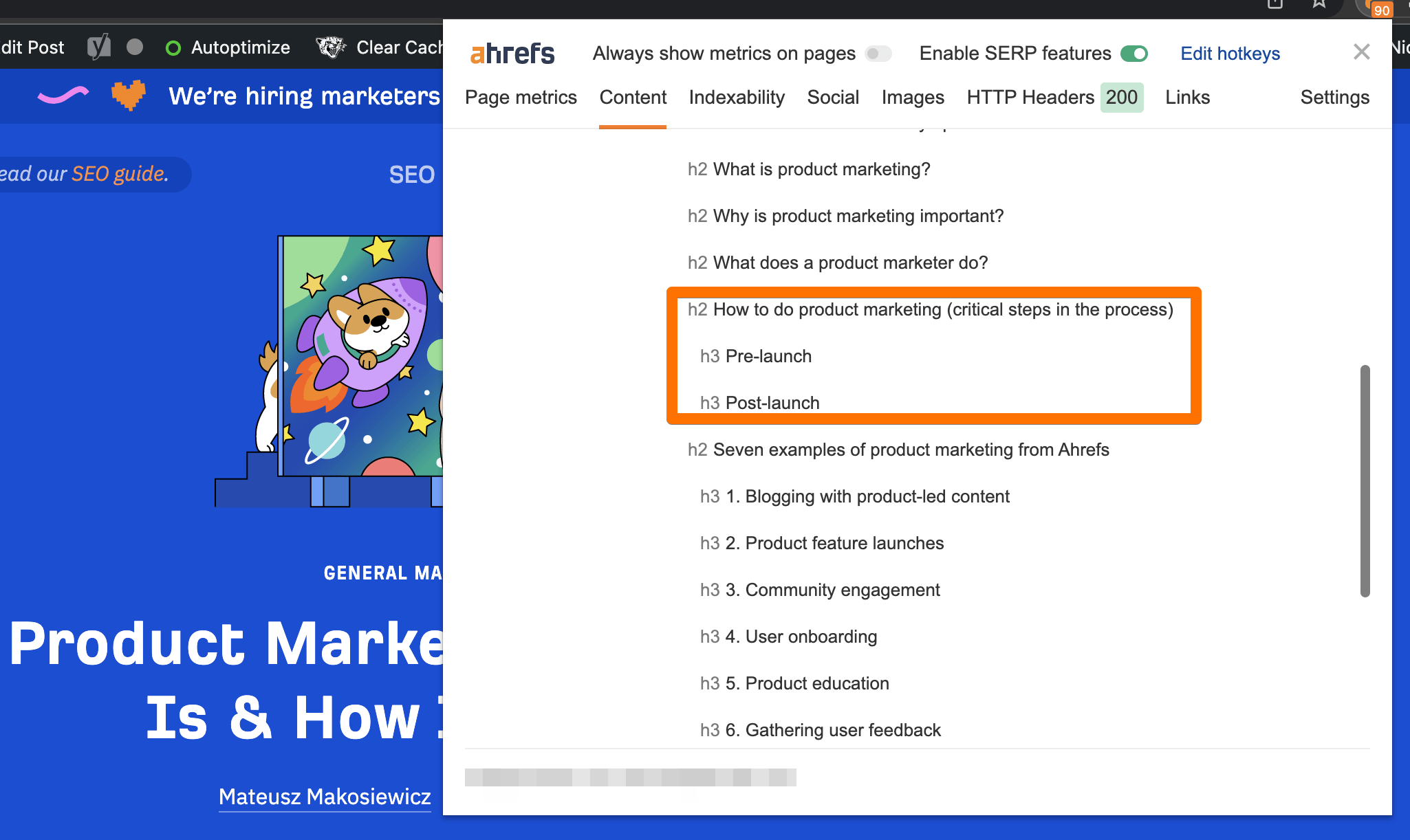 If you want an easy way to see how websites organize their header tags on the page, you can install the Ahrefs SEO Toolbar extension in your browser of choice (Google Chrome or Mozilla Firefox).