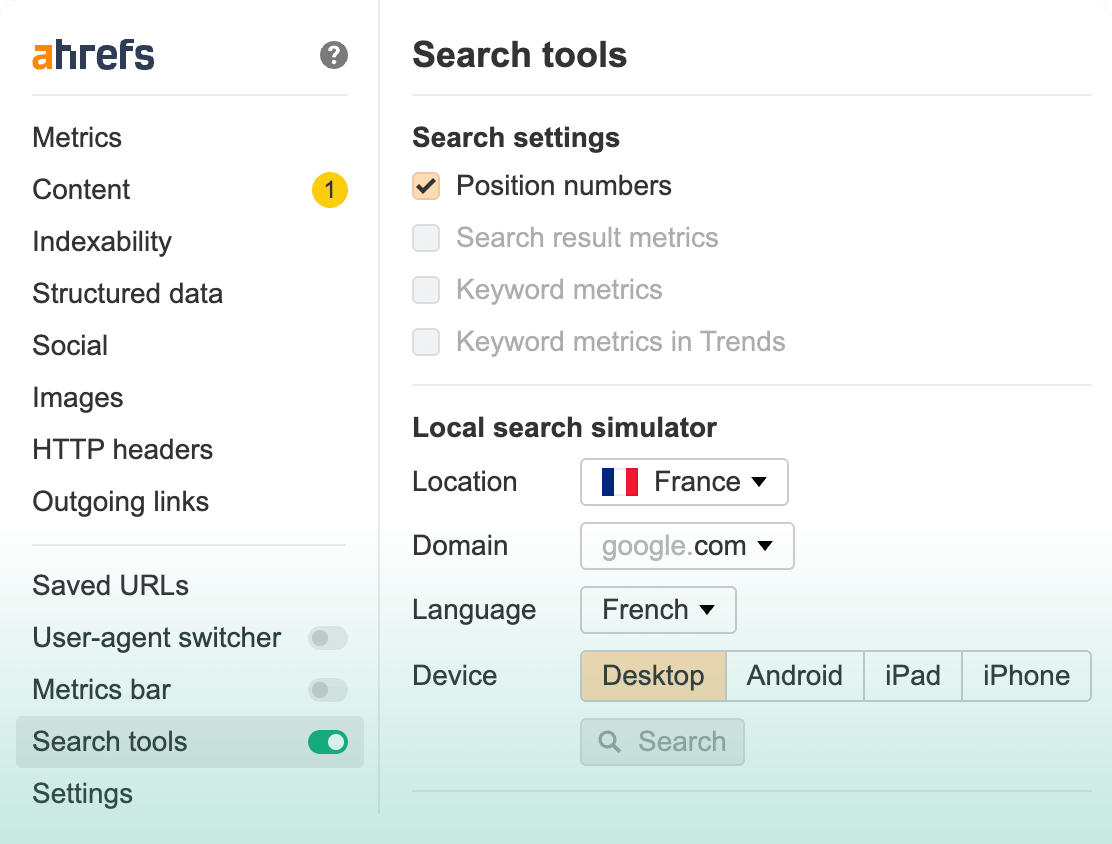 Ahrefs’ SERP Checker tool lets you see search results from any location, without using proxies and location-specific IP addresses.